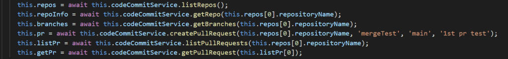 List pull requests, returns the PR’s for a repository in a particular state. I also checked that it matched what I could see on the AWS console.