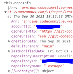 List Repos, will get and list all available repositories that the user has permissions to list within the AWS account, returning the repo ID and Name.