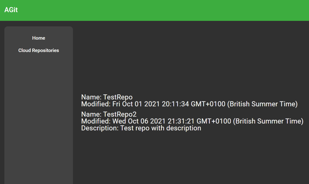 When the user routes to the list repo’s component this component will use the code commit service to call into AWS Code commit and get the repo’s available to the authenticated user. For every repo returned a further lookup is done for the more detailed information.